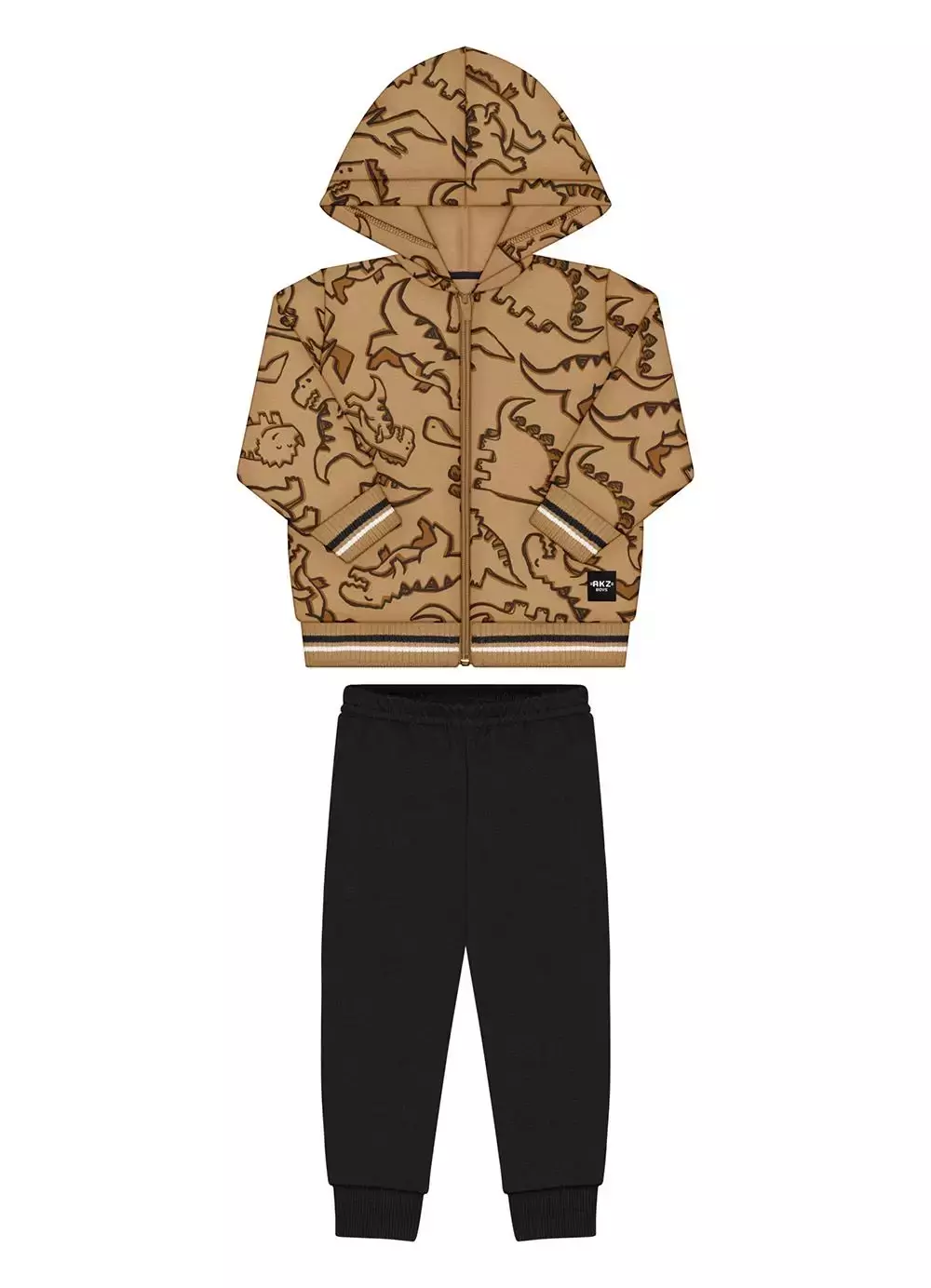 Este conjunto em moletom felpado é perfeito para os pequenos fãs de dinossauros! Detalhes como o fechamento prático da jaqueta e o cós elástico da calça garantem conforto e facilidade no uso diário. Feito com algodão responsável, Moletom felpado e macio, Jaqueta estampada com capuz, Fechamento por zíper, Barra e punhos em retilínea, Calça de cós elástico, Barras ajustadas.