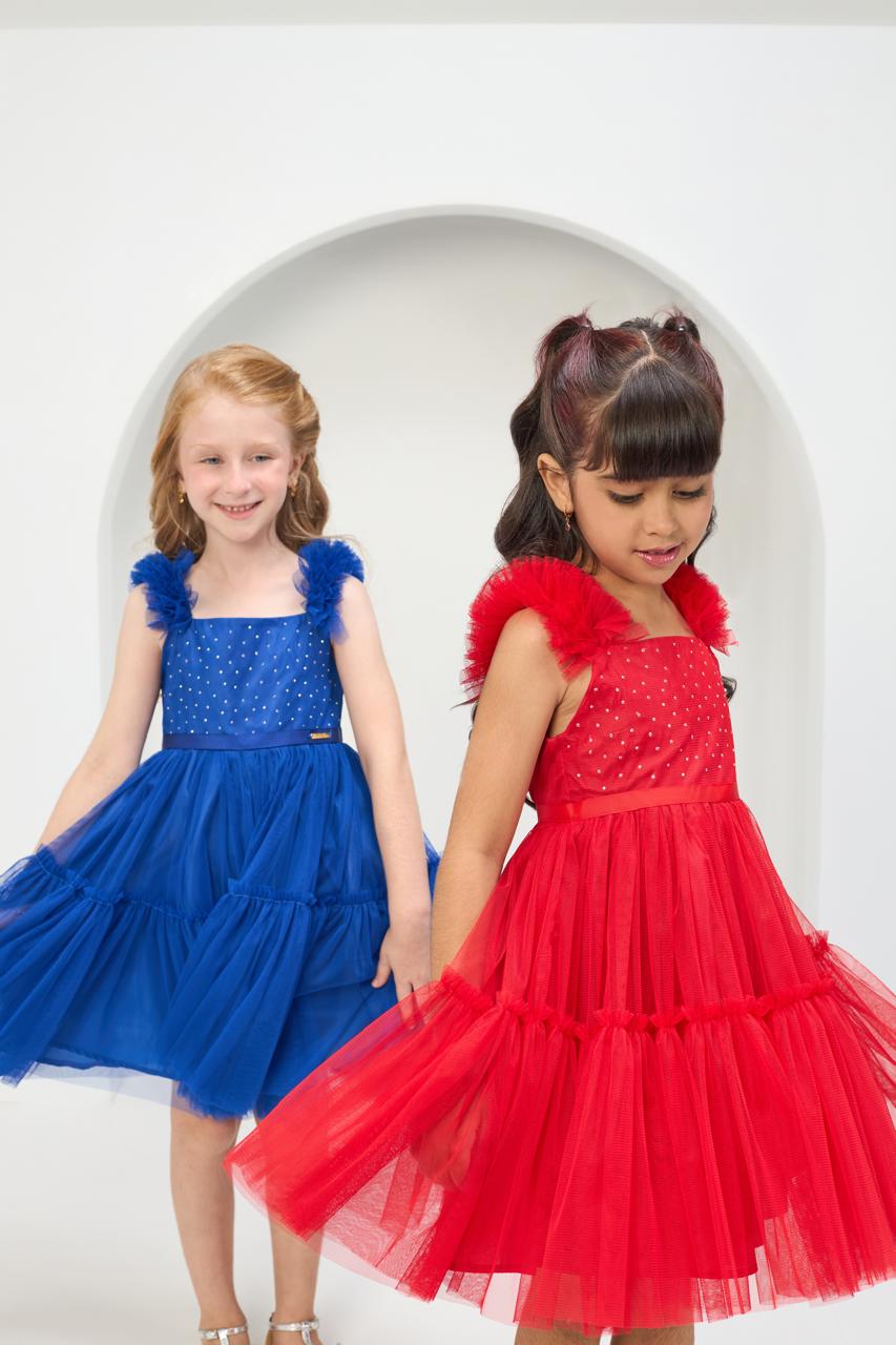 O Vestido Tule Com Strass e Fru Fru Nas Alças Bambollina é a escolha perfeita para sua pequena brilhar em qualquer festa! Confeccionado com tule manteiga, oferece conforto, leveza e muito movimento — ideal para as danças mais animadas. As alças com fru fru e os delicados strass no busto dão aquele toque de glamour que toda criança merece.